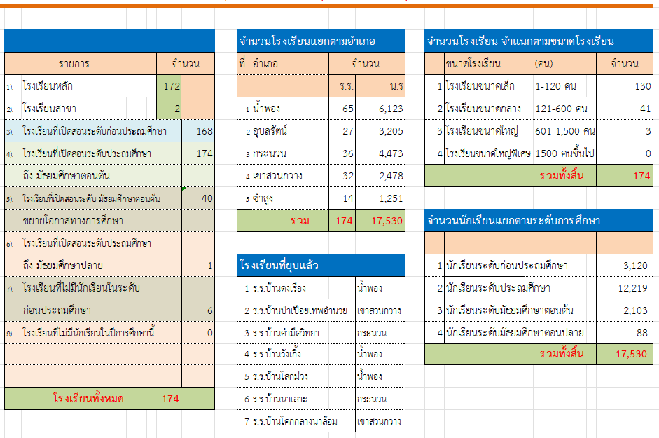 อำเภอน้ำพอง ประกอบด้วย 5 กลุ่มโรงเรียน