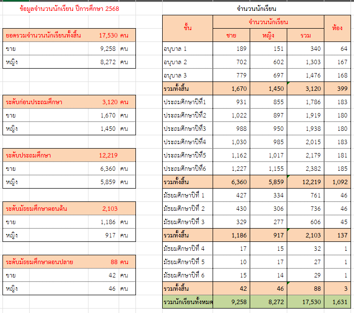 ข้อมูลจำนวนนักเรียนและห้องเรียน ปีการศึกษา 2568