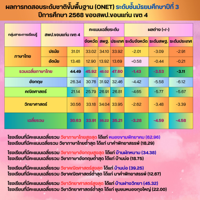 ผลสัมฤทธิ์ทางการเรียนของนักเรียน ปีการศึกษา 2568